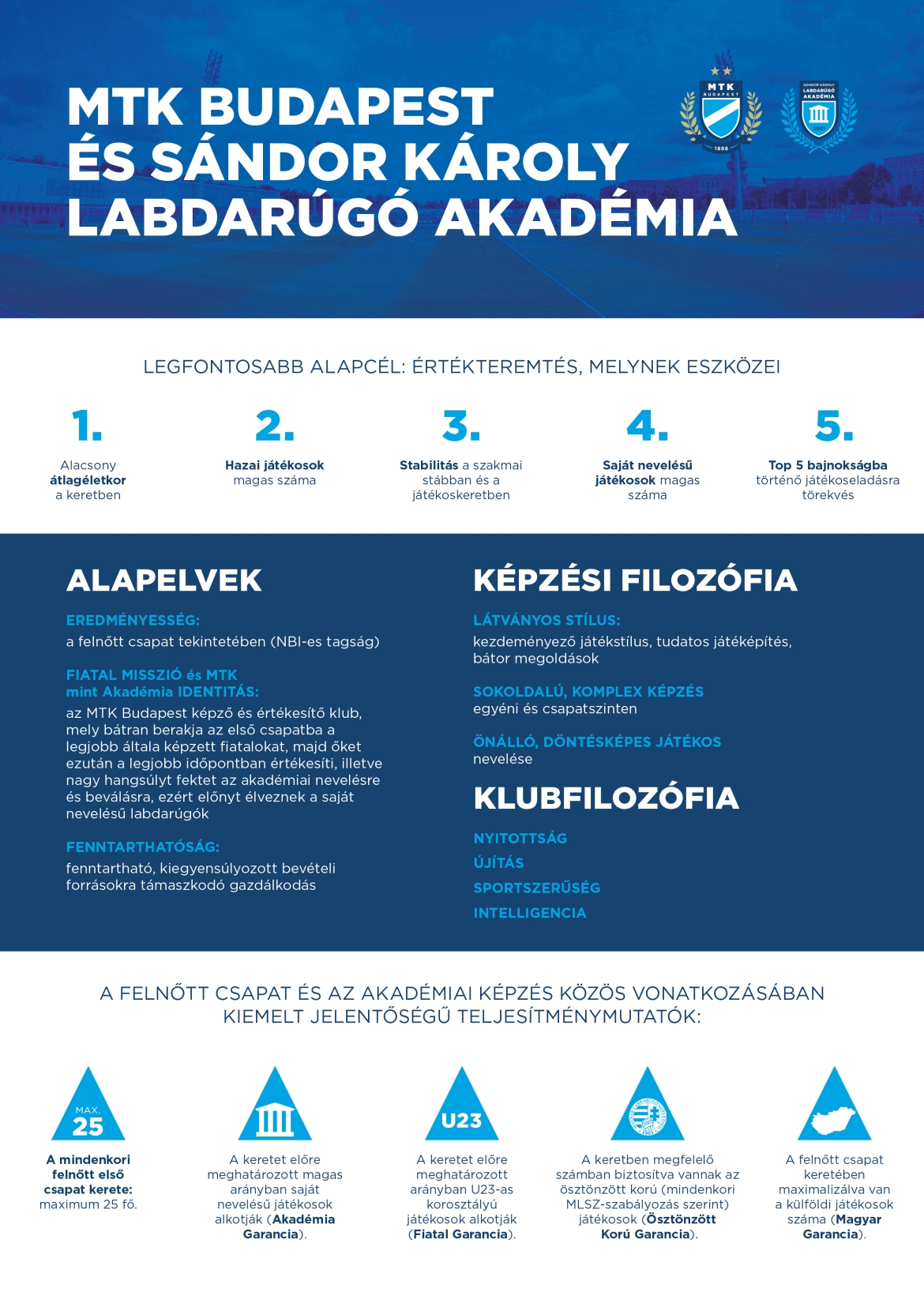 - Az értékteremtés egyik legmeghatározóbb eszköze az NB I-es tagság és a jó szereplés. A helyezésszerű eredményesség nálunk hagyományosan nem írhatja felül a klub stratégiát.