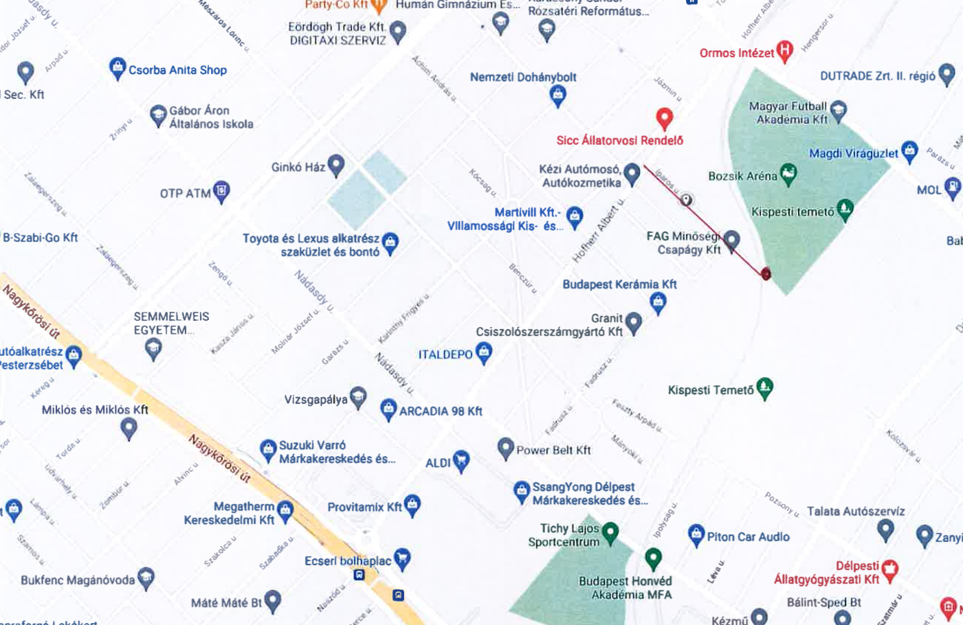 Íme, a vendégszurkolói bejárat megközelíthetősége (a piros vonal jelzi az érintett részt):