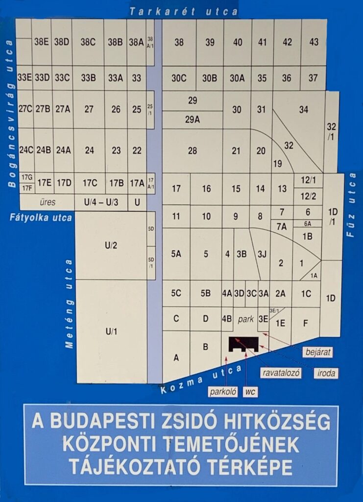A sírhelyek és a Kozma utcai Zsidó Temető térképe: