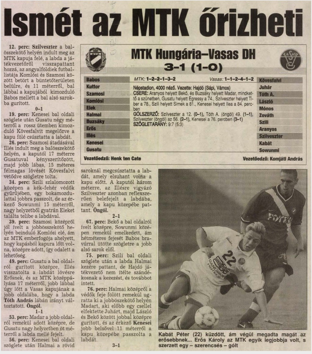 MTK-Hungária FC - Vasas Danubius Hotels SC 3-1 (0-1) - Magyar Kupa 1999-2000. évi döntő - 2000. május 3. - Népstadion - 4.000 néző