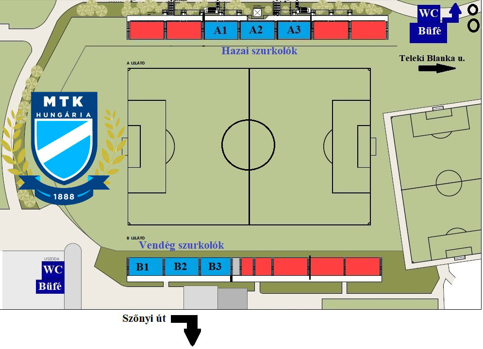 Drukkereink a Teleki Blanka utca felől foglalhatják el helyüket az A1-A3 szektorban, míga vendégek számára a B1-B3 szektorok vannak fenntartva. Parkolási lehetőségre korlátozott számban a BVSC parkolóiban, illetve a Teleki Blanka utcában van lehetőség. A mérkőzés alatt a stadionban két részen büfé és WC is üzemel majd.