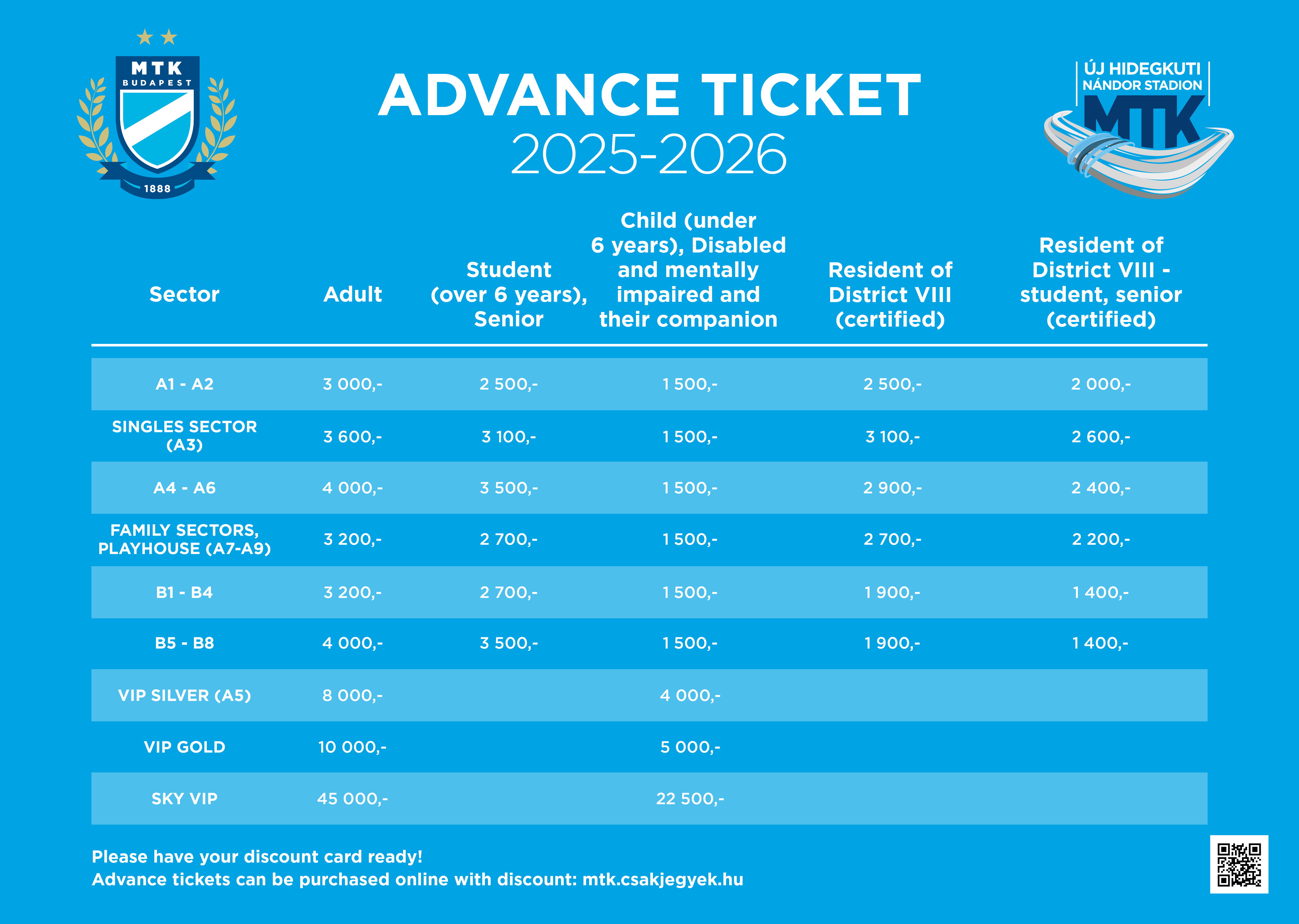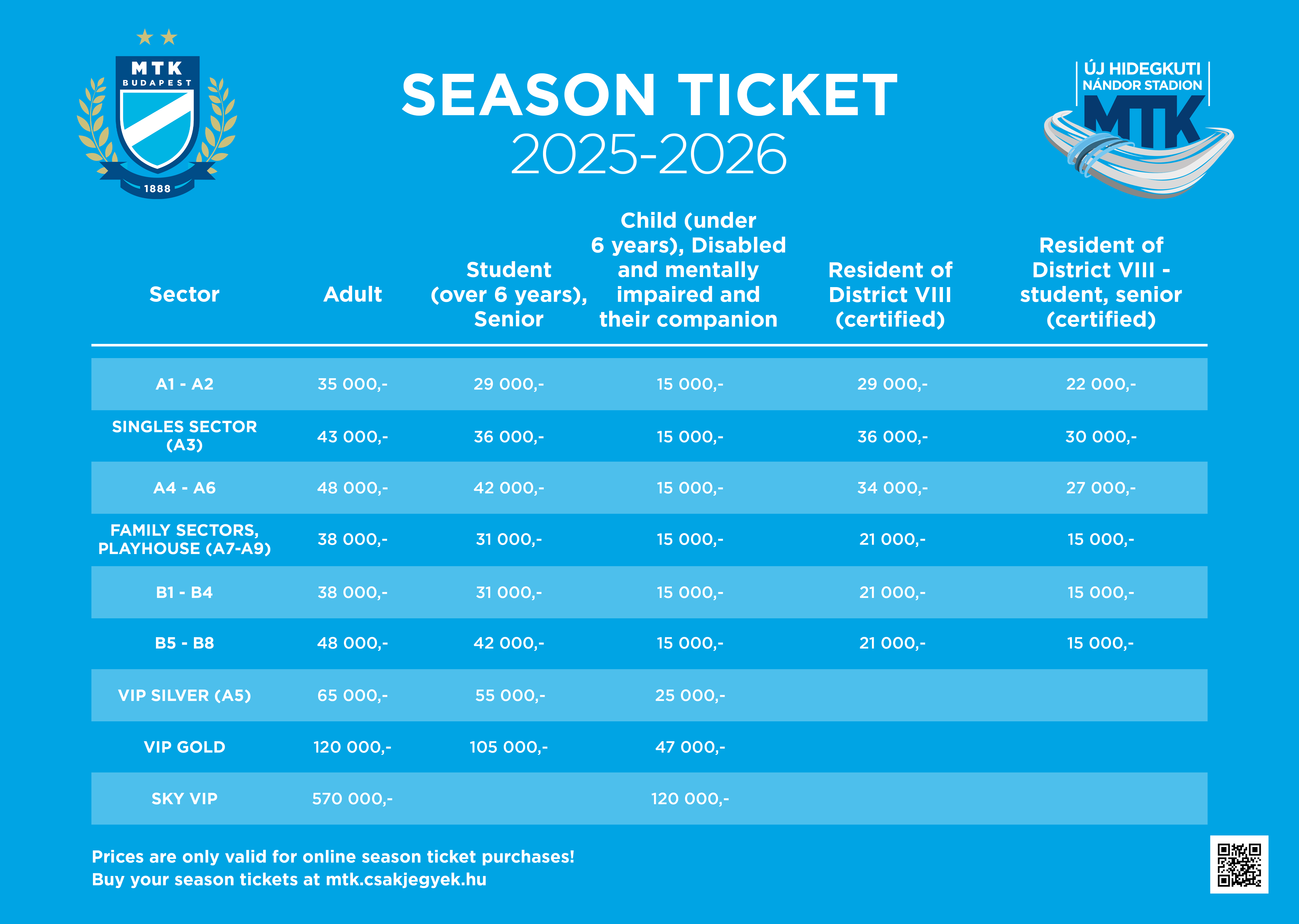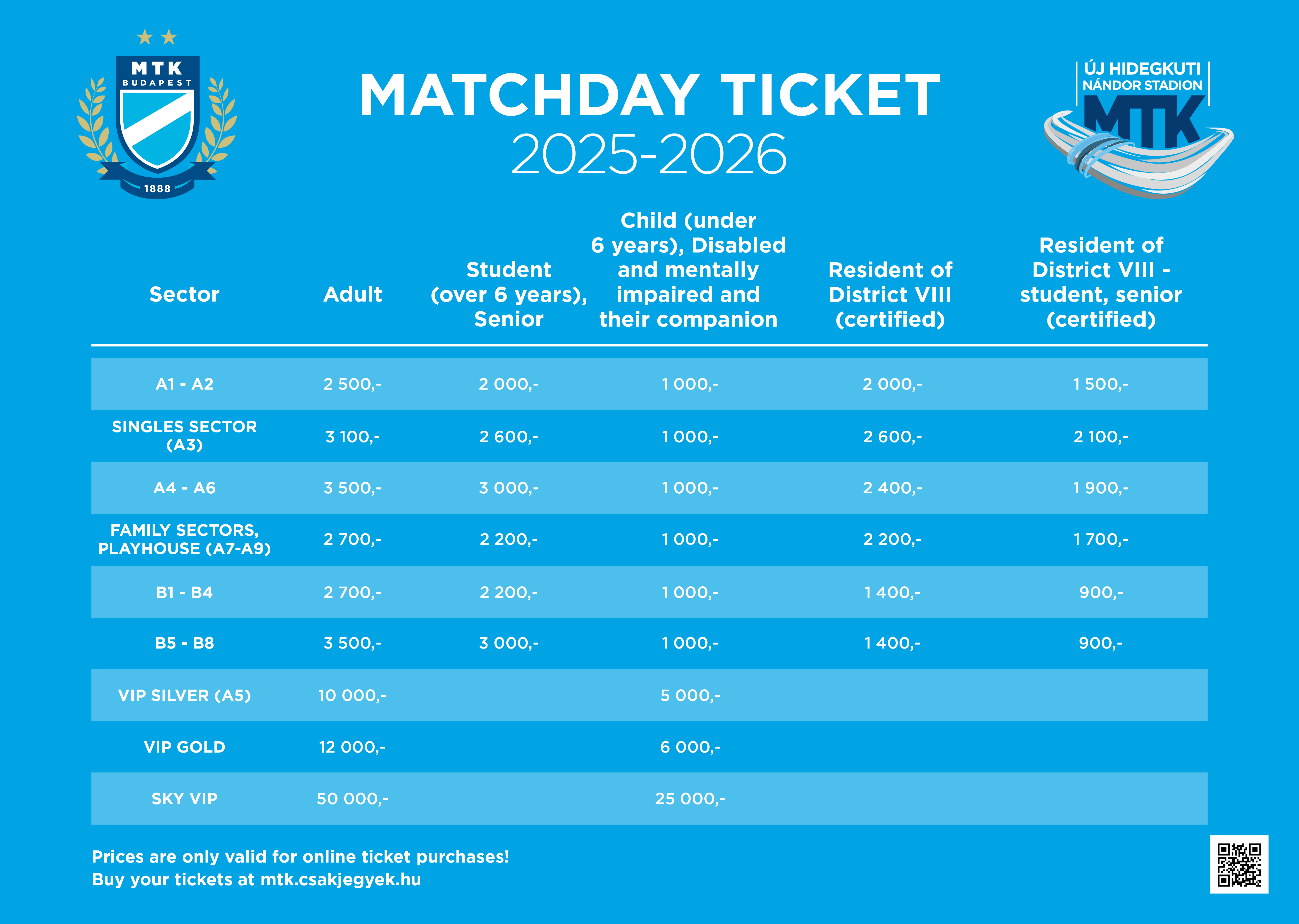 The stadium’s sector plan, moreover the current prices of the tickets and season tickets are available at mtk.csakjegyek.hu webpage as well.
